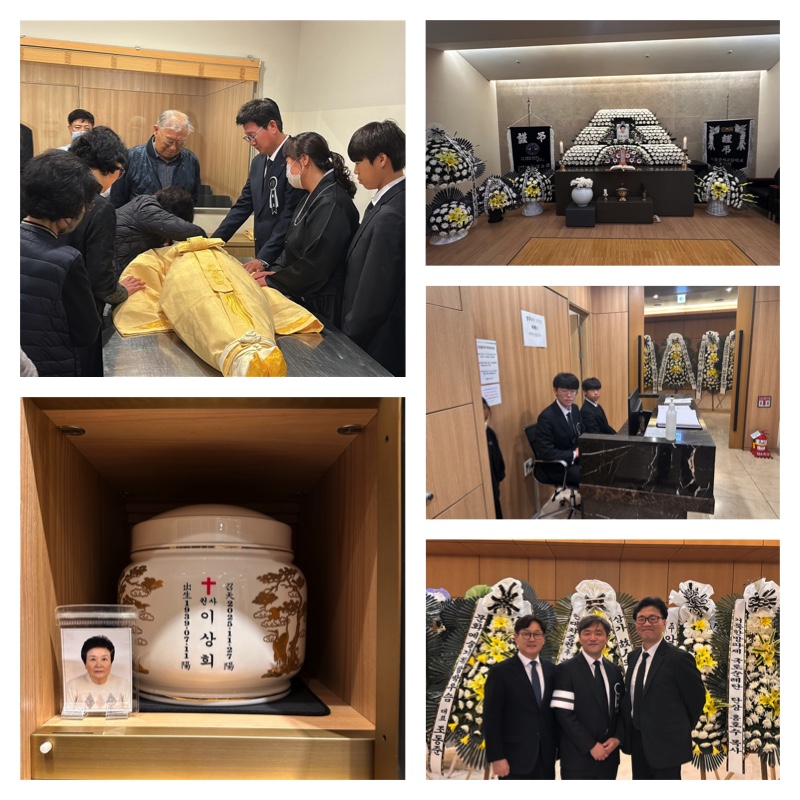 몇 년 전부터 장모님께서 치매로 고생하시다가 집에서 모시기가 힘들게 되어서 2024년 1월 27일 장모님께서 요양원(검단 그레이스힐 요양원)에 입소하셨습니다. 최근에 상태가 안좋아지셔서 콧줄로 영양분을 공급하게 되었고, 폐렴과 고열로 몇 번에 걸쳐서 병원에 입원하시는 상황이 반복되었습니다. 이번에도 2-3주간 병원에 입원하셨다가 호전되어서 11월 26일(수)에 요양원으로 퇴원을 하셨는데 갑자기 다음날 저녁 소천을 하셨습니다. 마지막에 큰 고통없이 가신 것은 감사하지만, 가족으로서 마지막을 함께 지키지 못해서 아쉽고 속상했습니다. 장례 일정은 상주되는 형님들이 당시 모두 해외에 계셔서 바로 진행하지 못하고 11/29(금)~12/1(월)로 일정을 조정하여 장례를 치르게 되었습니다.