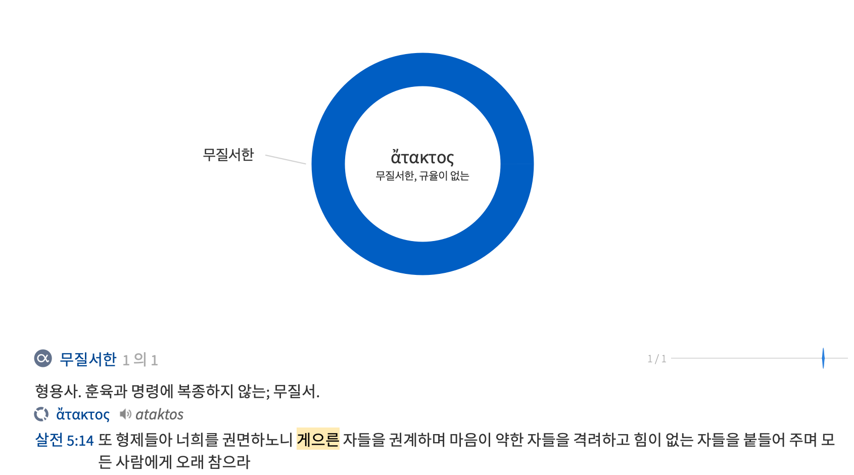 14절) '게으른 자들을 권계하며’, 본문의 게으른으로 번역된 헬라어는 ‘아탁투스’로 이 원형인 ‘아탁토스’는 부정접두사 ‘아’와 ‘배열하다, 배치하다’라는 의미를 지닌 ‘탓소’의 합성어이다. 그래서 원어의 의미는 '대열을 벗어난, 이탈한’이라는 의미로 행군중 대열에서 이탈하여 낙오한 병사를 가리키는 단어인데 이들이 대열에서 벗어난 것은 체력의 문제가 아니라 규율에 대한 반항과 게으름 때문이다. 본문에서는 ‘무질서한, 규율이 없는’의 의미의 형용사형으로 신약성경에서 해당 본문에서만 한번 이 단어가 사용되고 있다.