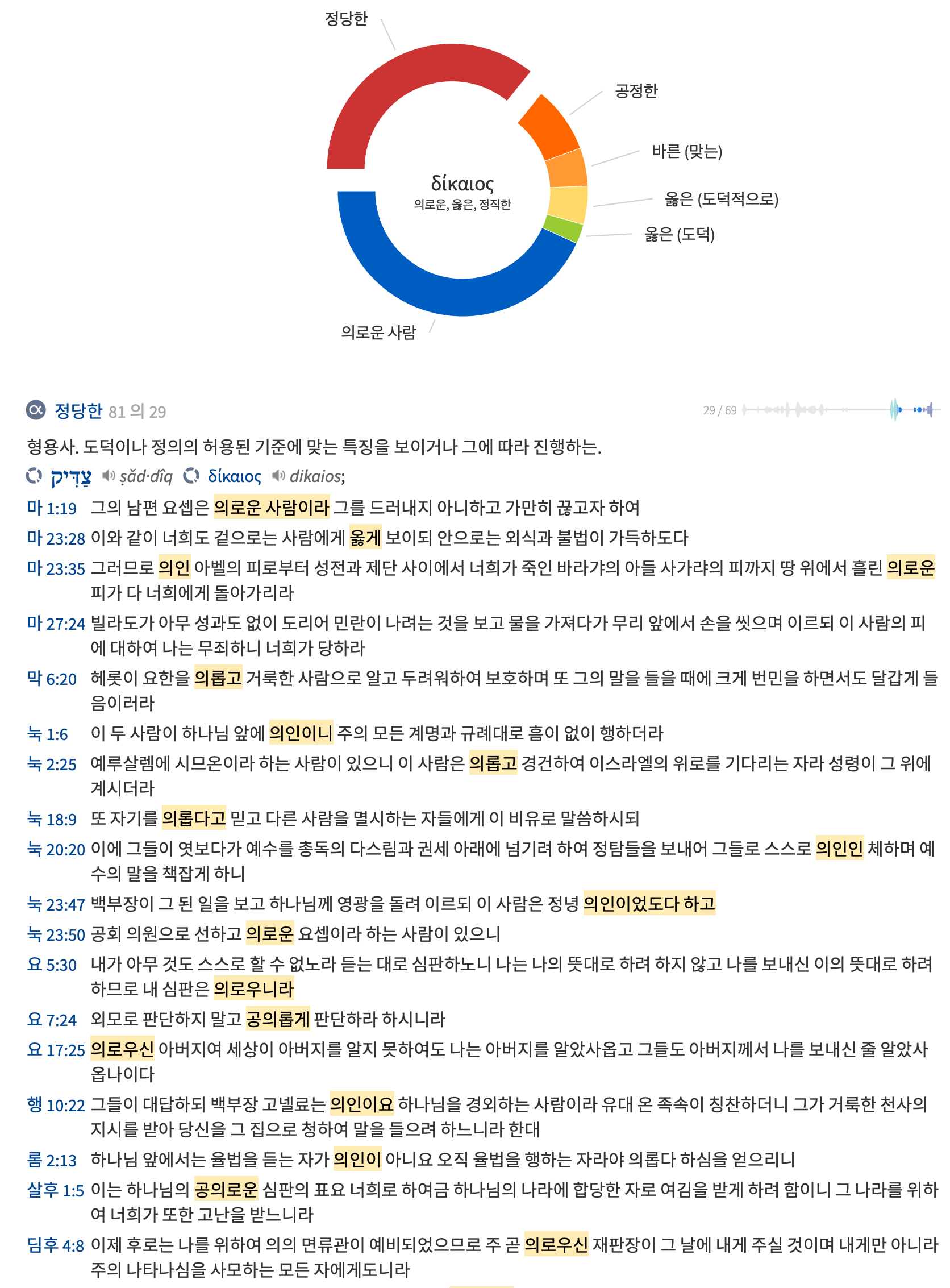 본문에서 ‘표’로 번역된 ‘엔데이그마’는 증거라는 뜻으로 진실이 규명되거나 반증되는 것으로 추정되는 모든 사실 문제를 규명하는 수단을 의미한다. 말하자면 리트머스 시험지와 같이 이것이 산성인지 염기성인지를 알기 위해서 페톨프탈레인 용액을 떨어뜨리거나 리트머스 시험지에 집어넣어 변화되는 색깔을 관찰하는 것과 같다. 또한 ‘공의로운’에 해당하는 ‘디카이아스’의 원형 ‘디카이오스’는 편벽됨이나 그릇됨이 전혀 없이 옳은 것을 의미한다. 하나님께서는 외모로 취하지 않으시고 심는대로 거두시는 분이시다.(갈 6:7)