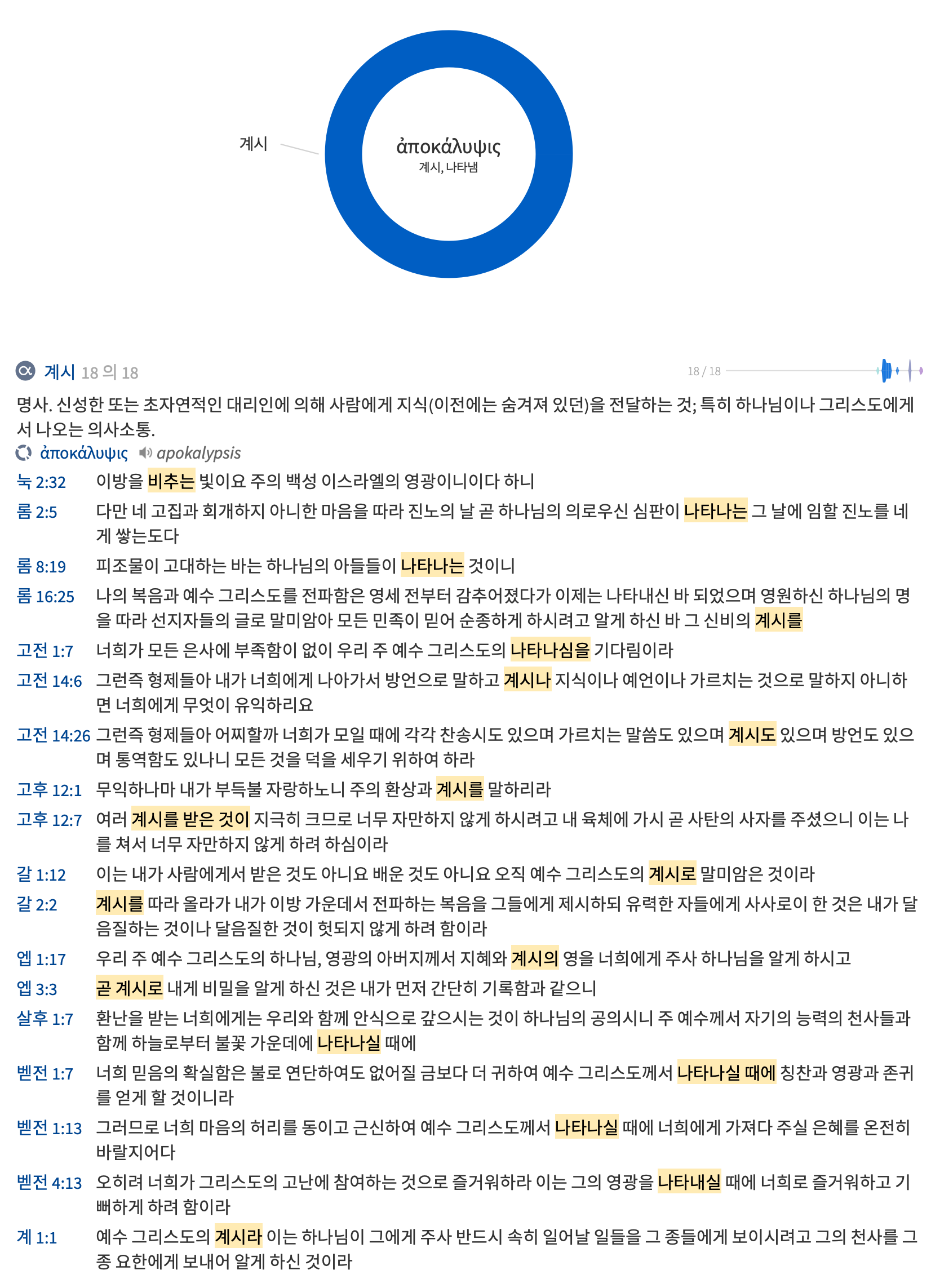 ‘주 예수께서 자기의 능력의 천사들과 함께 하늘로부터 불꽃 가운데에 나타나실 때에’, 이는 예수 그리스도의 재림시에 대한 묘사이다. 본문에서 ‘나타나다’라는 의미의 ‘아포칼륍세이’의 원형 ‘아포칼립시스’는 ‘~로부터’를 의미하는 ‘아포’와 ‘덥다, 가리다’라는 의미의 ‘칼립토’의 합성어로 본래 덥개를 벗기는 것, 감추어진 것을 드러내 명백히 보이는 것을 나타내는데 성경에서는 주로 계시로 번역된다.(고전 14:6; 갈 1:12; 엡 3:3) 이는 신적이고 초월적인 것이 사람들에게 드러나는 개념이다. 주님의 재림은 승천 이후 사람들 눈에 감추어졌던 예수께서 신적이고 초월적인 모습으로 사람들에게 명백히 나타나는 것이다.