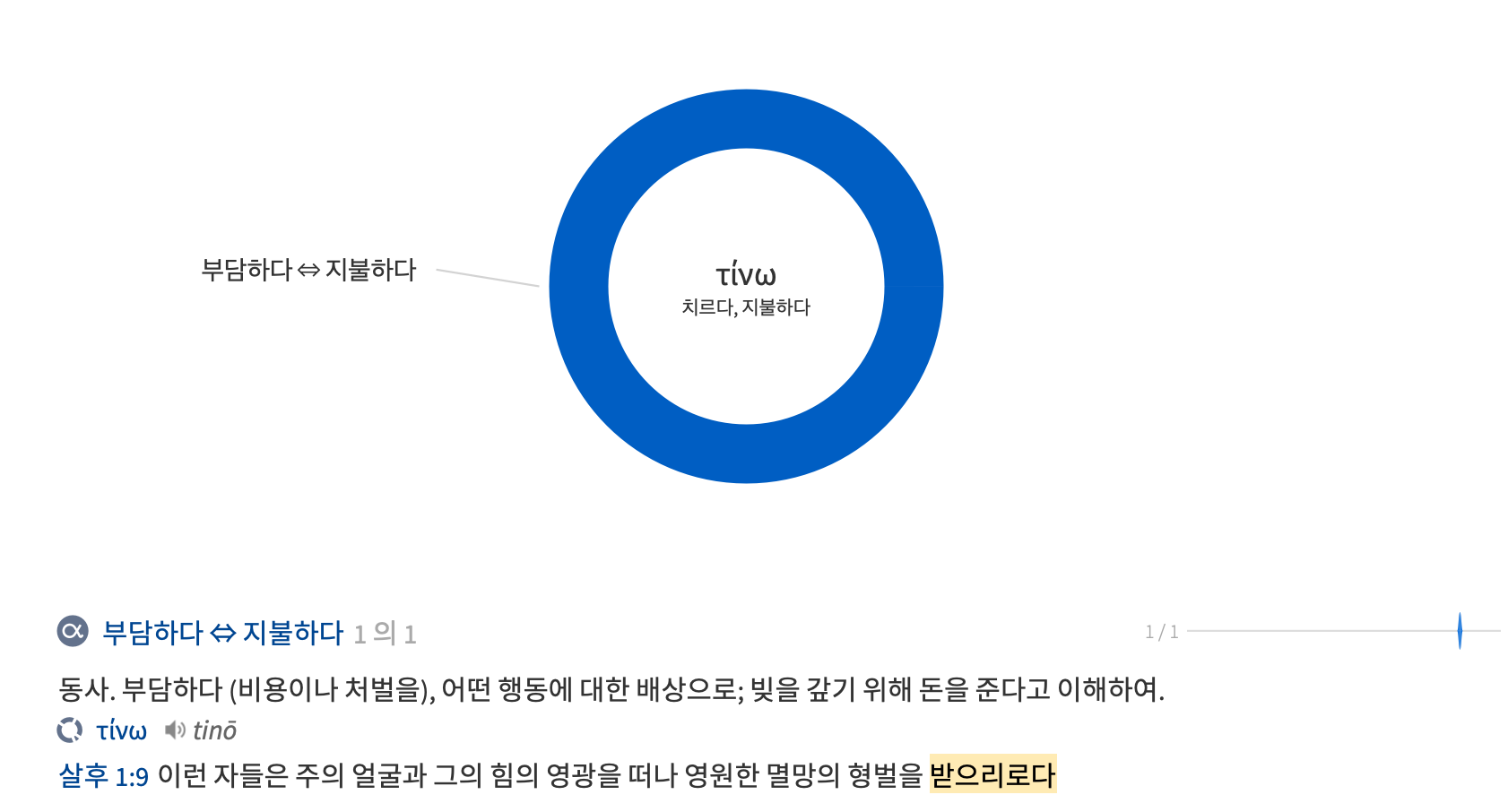 ‘받으리로다’로 번역된 ‘티수신’은 신약 성경에서 이곳에만 유일하게 쓰인 동사이다. 원형은 ‘티노’로 ‘치르다, 지불하다’의 의미이다. 이는 미래 능동태 직설법의 표현으로 주님의 재림시에 이 형벌이 이루어질 것을 의미한다. 그렇기에 이런 자들이 현 시대에 처벌 받지 않고 도리어 더 형통해 보이는 것을 이상히 여길 필요가 없다. 분명한 것은 주께서 불꽃 가운데 재림하심으로 영원한 멸망의 형벌을 내리실 것이라는 것이다. 그러므로 고난 중에 있는 그리스도인들은 일시적 형통에 즐거워하고 있는 악인들을 부러워할 필요가 없고 현재 당하는 고난에 좌절하거나 낙망할 필요가 없다.