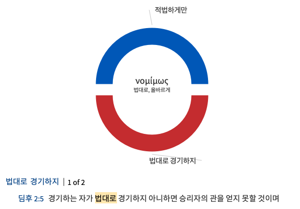 딤후 2:5에서는 ‘법대로’ 경기하는 자의 비유속에서 이 표현을 사용한다.