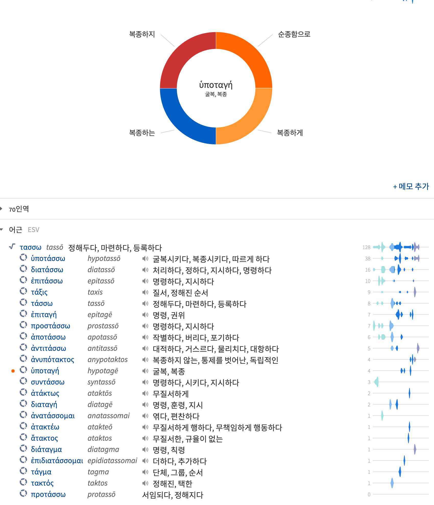 ‘순종함으로’는 ‘휘포타게’인데 이는 ‘굴복, 복종’이라는 의미로 ‘~아래에, 부족한”을 의미하는 전치사 ‘hypo’와 ‘두다, 정해두다’라는 동사 ‘타쏘’의 합성어로 ‘휘포타쏘’는 ‘굴복시키다, 복종시키다’라는 의미이다. 어떤 것 아래 위치하여 그것을 따르는 것을 의미하는 표현이다. 본문에서는 ‘엔 파세 휘포타게’(with all submission)으로 사용되었다.