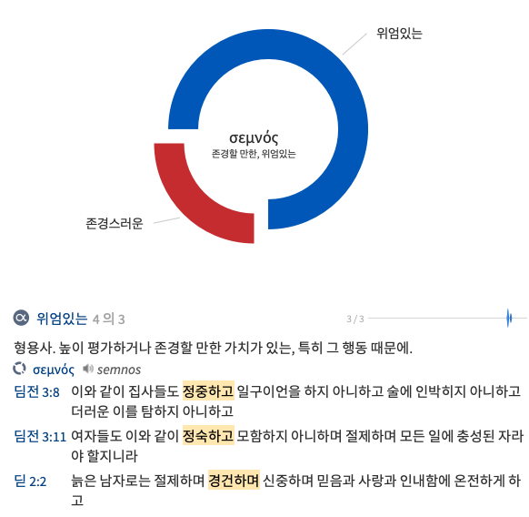 ‘정중하고’로 번역된 ‘셈노스’는 ‘경배하다, 경의를 표한다’라는 동사 ‘세보’와 형용사형어미인 ‘노스’의 합성어로 ‘존경할만한, 위엄있는’이라는 의미이다.