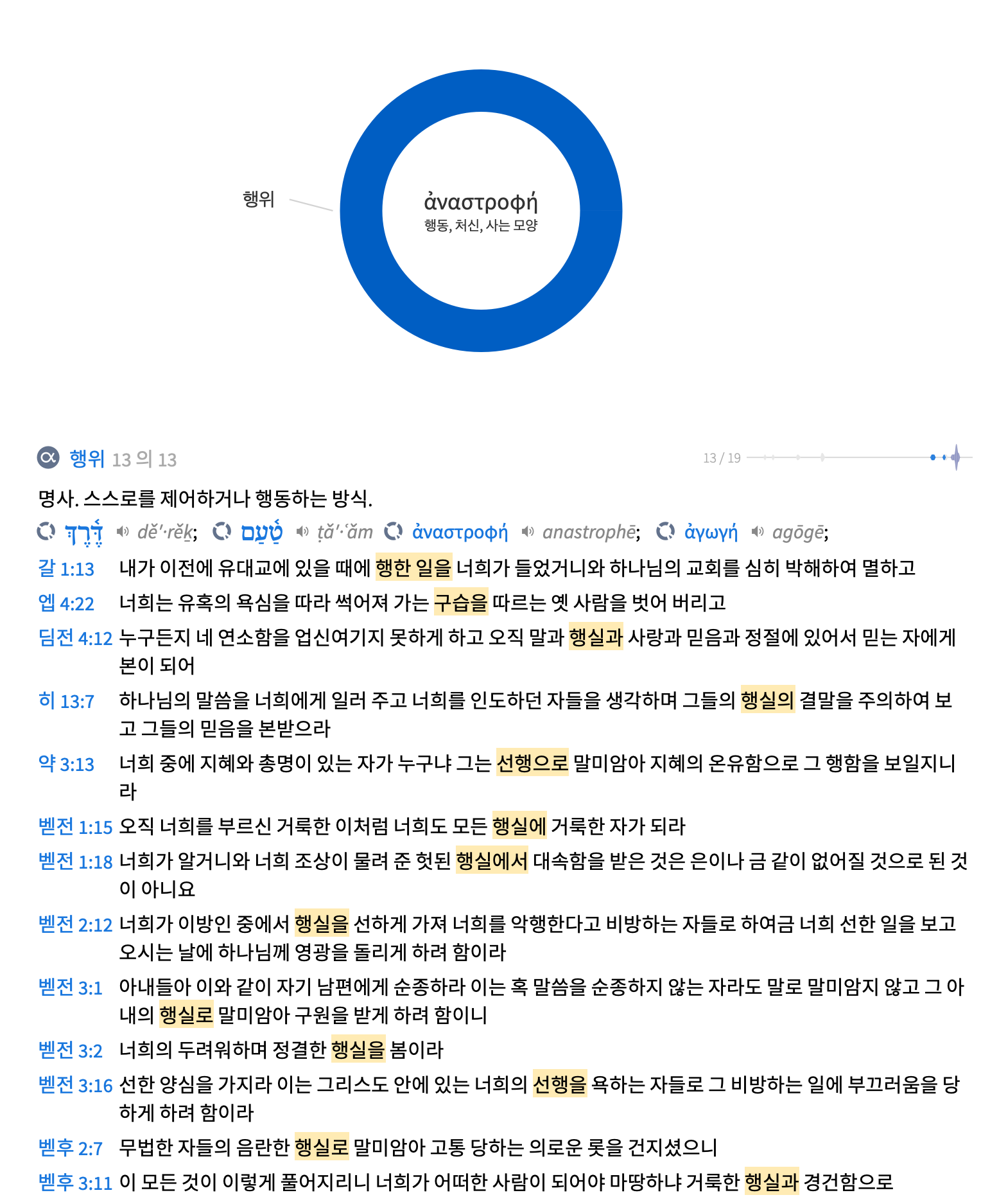 둘째 ‘행실’이다. ‘아나스트로페’는 일반적인 행동 뿐만 아니라 습관이나 품행 및 삶의 방식을 포함하여 다른 사람들과 관계되는 모든 행동을 의미한다. 말과 행동이 이어서 나오는 것은 언행일치를 강조하는 것이다.