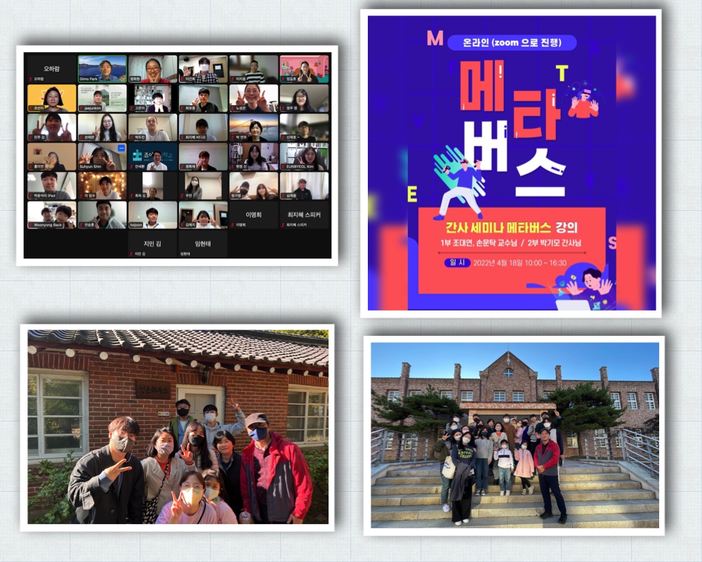 전반기 TOT를 진행하면서 ‘미디어 사역의 방향’이라는 주제 속에서 ‘교육의 미래와 메타버스’라는 내용을 다루었는데 급변하는 미디어 환경속에서 간사들이 함께 주지해야할 내용이라고 판단되어서 4월 18일 진행된 간사 세미나 시간에 ‘메타버스’라는 주제의 강의를 준비하였습니다. 오전에는 조대연, 손문탁 교수님이 강의를 진행해주셨고, 오후에는 제가 오전 강의 내용을 정리하고 Framevr이라는 메타버스 관련된 앱이 어떻게 작동하는지를 살펴보고 각 부서에서 직접 가상 공간에 자신의 사역을 소개하는 장을 만들고 시연하는 시간을 가졌습니다.
