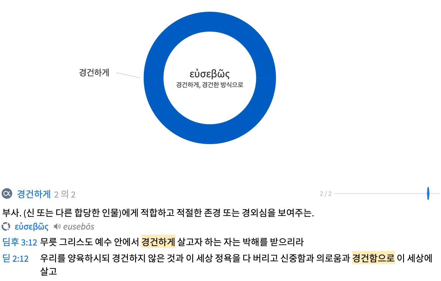‘경건하게’로 번역된 ‘유세보스’는 ‘경배하다, 경의를 표하다’라는 의미의 동사 ‘세보’에서 파생되었고 이것의 명사형은 ‘유세베이아, 경건, 독실함’이고 ‘셈노스, 존경할만한, 위엄있는’이라는 표현들이 사용된다. 이처럼 신에 대한 존경과 경외심을 가지는 것은 모든 종교인의 자세이다. 그래서 바울은 그런 종교인들과 이들을 구분하기 위해서 ‘그리스도 예수 안에서. 엔 크리스토 이에수’라는 표현을 분명하게 사용한다. 단순히 종교심을 가지는 것이 아니라 그리스도 예수를 주로 고백하고 그의 주권인 인정하며 삶을 살아가기로 다짐한 이들의 삶, 그들이 추구하는 경건은 절대로 세상과 타협할 수 없으며 이는 필연적으로 박해와 고난을 일으킨다는 것이다.