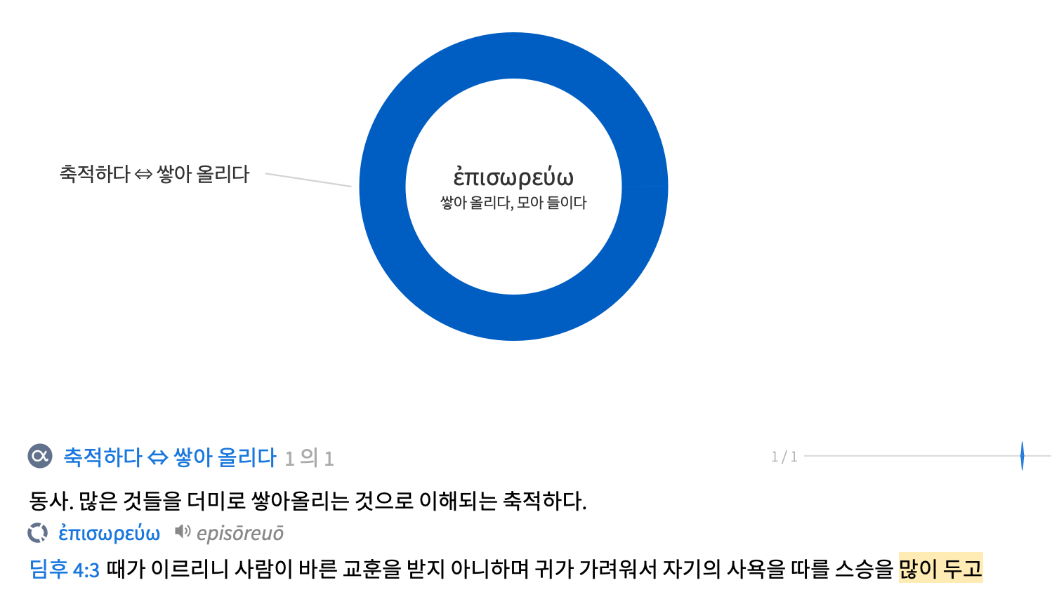‘많이 두고’로 번역된 ‘에피소류수신’은 ‘~위에’라는 의미의 전치사 ‘에피’와 ‘쌓다, 채우다’라는 의미의 동사 ‘소류오’의 합성어로 문자적으로 ‘위로 쌓아 올리다’라는 의미로 ‘거짓 진리를 향한 브레이크 없는 욕망’을 극명하게 드러낸다.