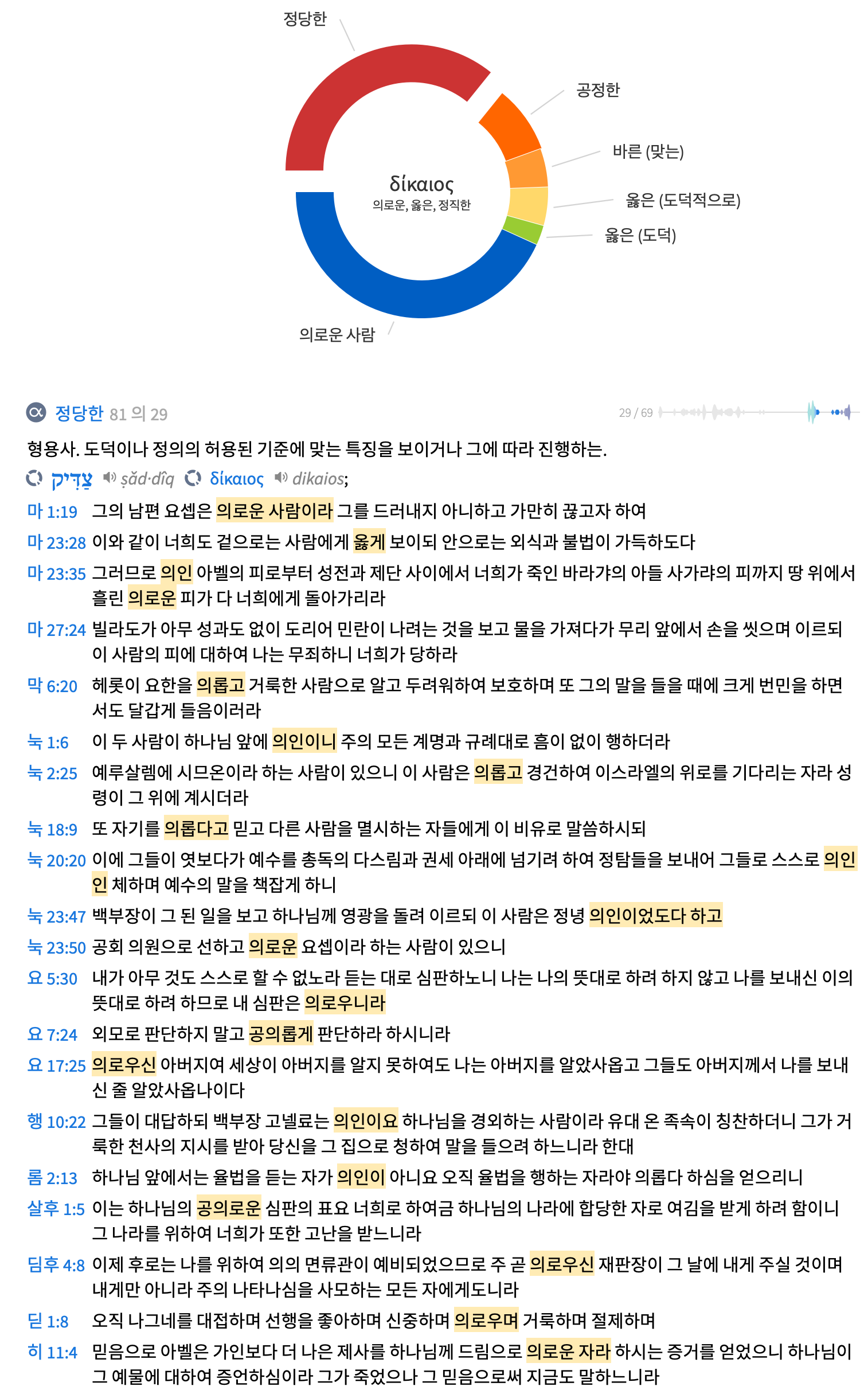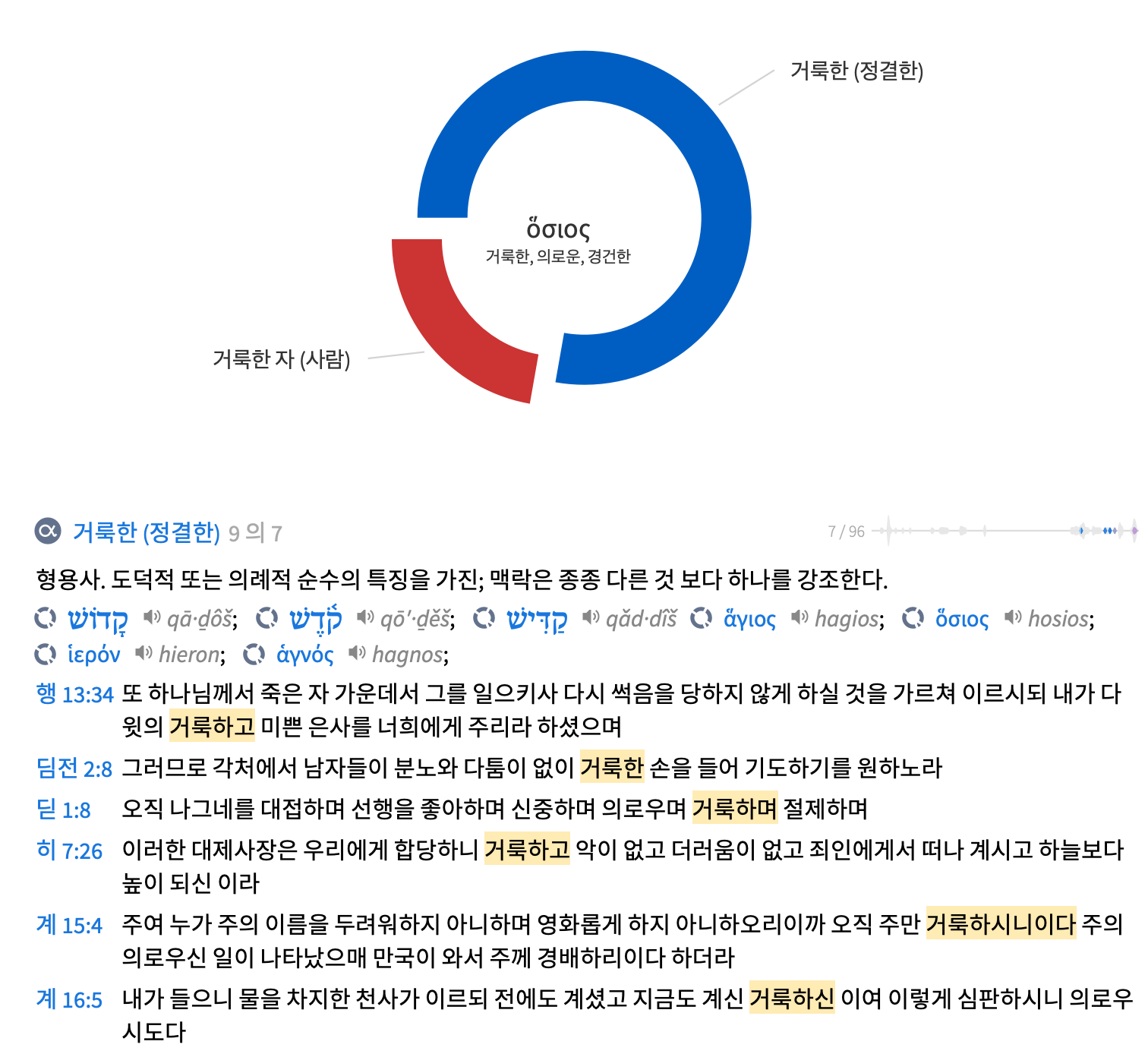 의로우며 거룩하며, ‘디카이온 호시온’, 한글번역으로는 이 두가지가 비슷한 의미로 보이지만 원문에서 두 단어의 뉘앙스는 분명하게 구별된다. ‘의로우며’로 번역된 ‘디카이온’의 원형 ‘디카이오스’는 히브리어 ‘차디크’와 동일하게 하나님이나 사람의 법에 어그러짐이 없이 법대로 사는 것을 의미한다. ‘거룩하며’로 번역된 ‘호시온’의 원형 ‘호시오스’는 ‘헌신적인, 하나님을 기쁘시게 하는’이란 보다 적극적인 의미가 있다. 전자가 정해진 어떤 기준에 어그러짐이 없음을 의미하는 것이라면 후자는 좀더 적극적이고 능동적으로 스스로를 의생하여 하나님이 기뻐하시는 거룩한 목적을 이루며 살아가는 것을 의미한다.