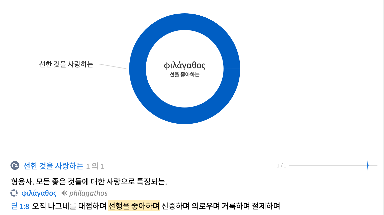 ‘선을 좋아하며’, ‘필라가돈’은 ‘필로스’와 ‘선’을 의미하는 ‘아가도스’의 합성어로 ‘선한 것을 사랑하는’을 의미한다. 사랑이란 단지 좋은 감정을 가지는 것에 머무는 것이 아니라 이를 집요하게 추구하며 이를 위해서 수고와 노력을 아끼지 않는 것을 의미한다. 본문 역시 선을 추구함에 있어 매우 적극적인 태도를 갖는 것을 의미한다.