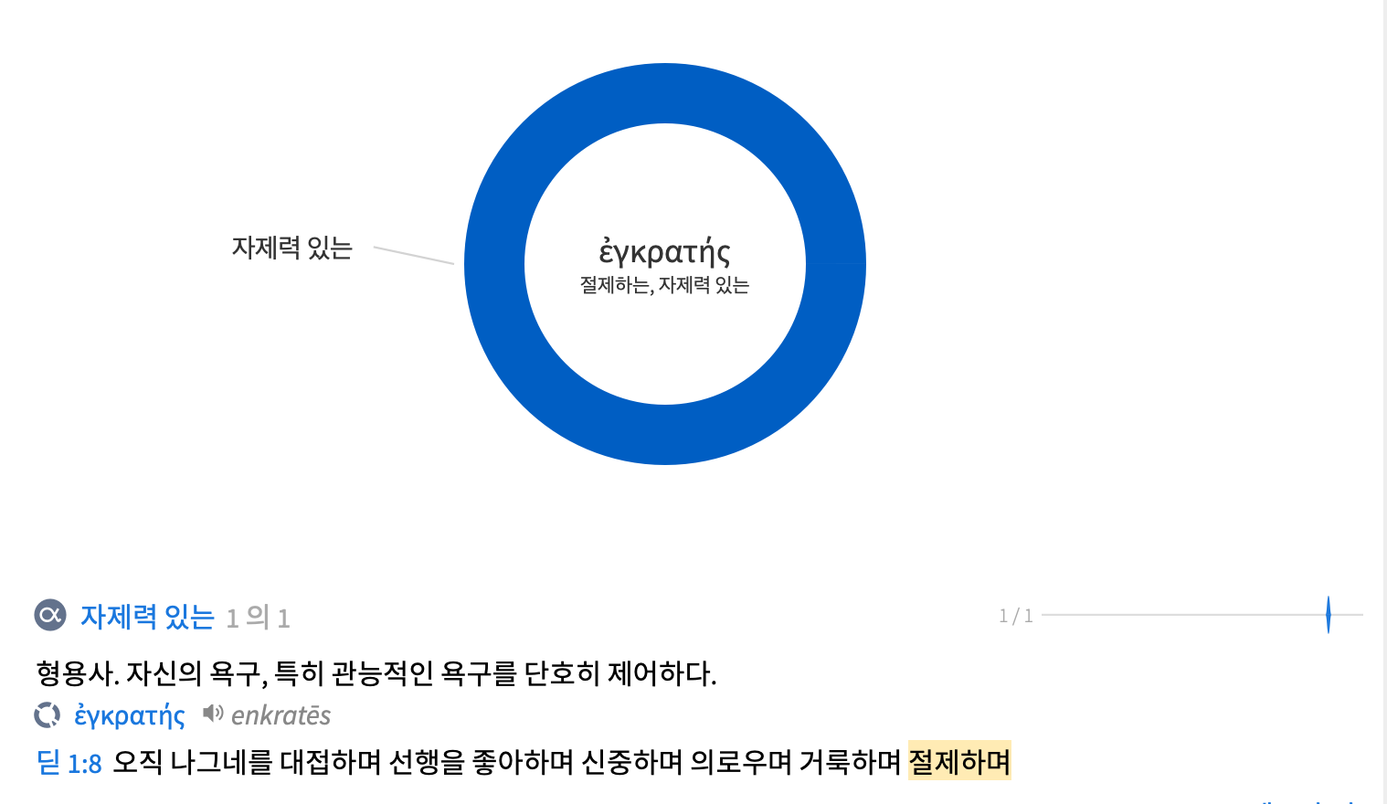 ‘절제하며’, ‘엥크라테’의 원형 ‘엥크라테스’는 ‘~안에’를 의미하는 전치사 ‘엔’과 ‘힘 능력’을 의미하는 명사 ‘크라토스’의 합성어로 문자적으로 ‘힘 안에 있는, 자제력이 있는’이란 의미로 쓰였다. 이는 ‘물욕, 권세욕, 명예욕’으로부터 스스로를 지킨다는 의미를 지닌다. 이처럼 인간의 죄성을 억제하는 절제는 인간의 힘으로는 불가능하다. 아담의 타락 이후 영적 선을 이루는데 인간은 전적으로 무능해졌기에 성령의 도우심이 반드시 필요하다. 그런 의미에서 ‘절제하며’라는 표현은 거룩한 영이신 성령과 동행하는 것을 요구하는 것이다.