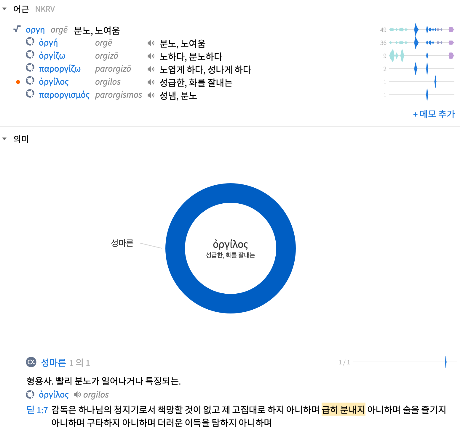 ‘급히 분내다’라는 표현은 ‘오르길론’으로 이곳에서 유일하게 한번 사용된다. 이는 ‘진노’를 의미하는 명사 ‘오르게’에서 유래하였다. 분노를 품고 또한 그 분노를 쉽게 폭발시키는 자는 온유하고 인내하시는 하나님의 성품을 본받지 못한 자로서 하나님의 의를 이루지 못한다.(약 1:2); 민 20:10-13)