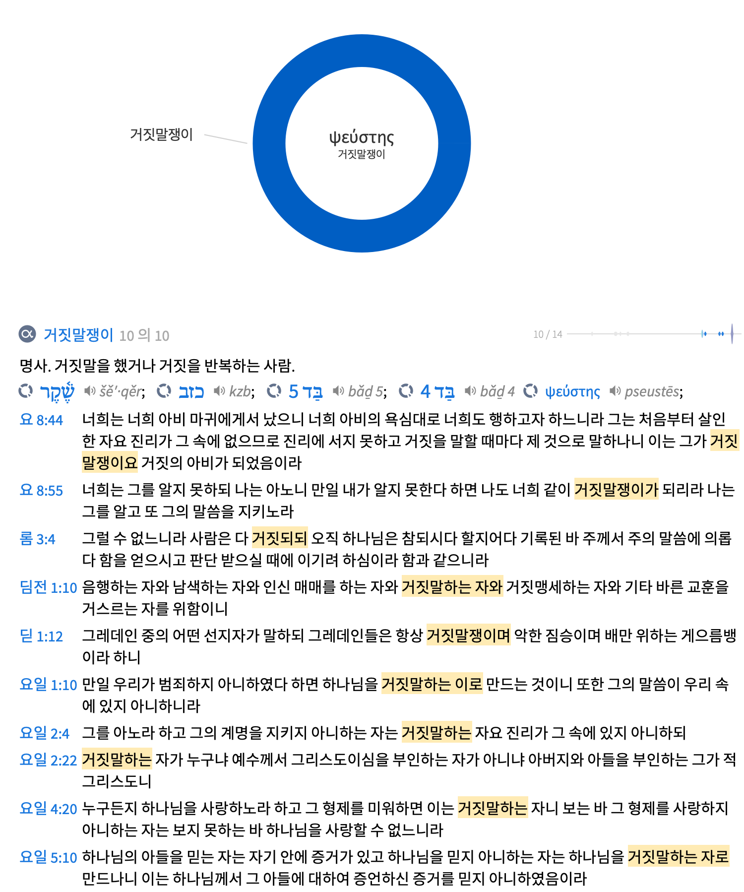 ‘거짓말장이며’로 번역된 ‘프슈스타이’의 원형 ‘프슈스테스’는 ‘거짓말쟁이, 신뢰를 깨뜨리는 자, 거짓되고 신실치 못한 사람’을 말한다.