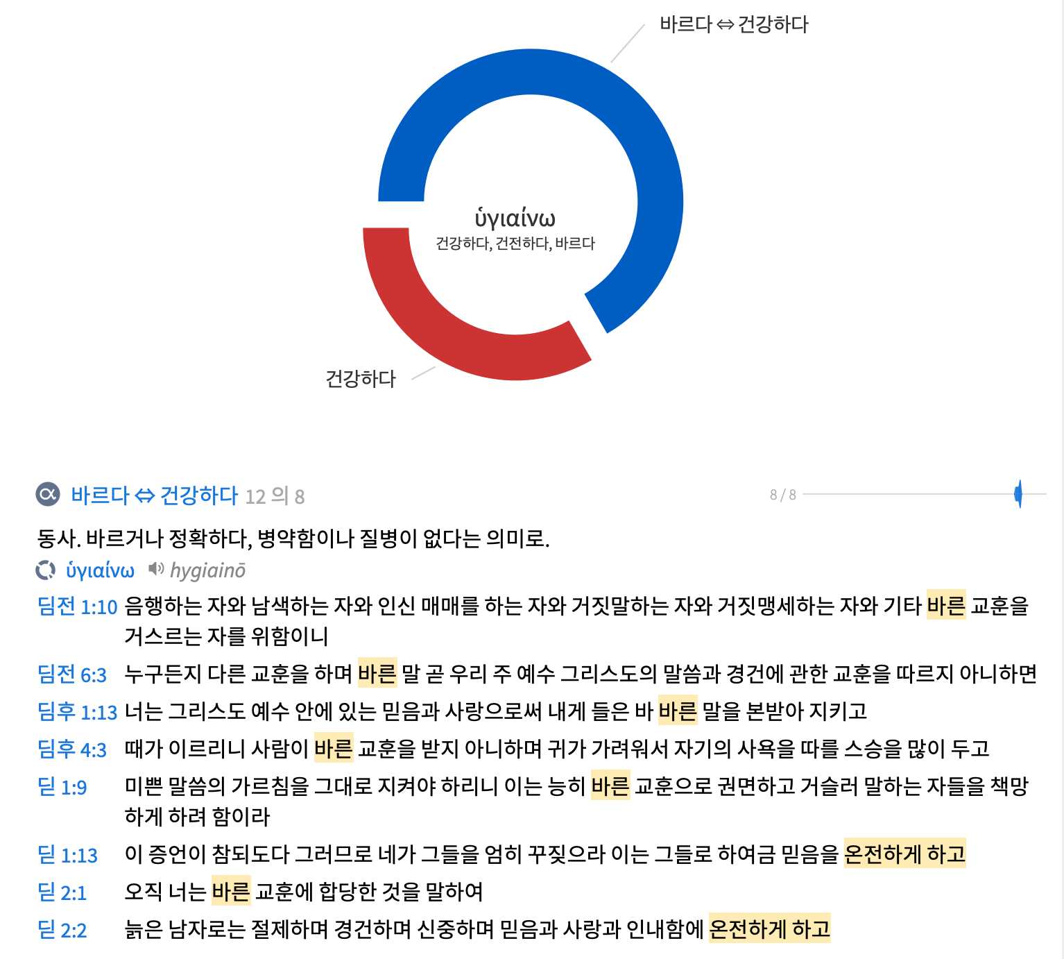 ‘온전하게 하고’로 번역된 ‘휘기아이논타스’는 ‘휘기아이노’의 현재 분사이다. 이 온전하게라는 표현은 1:9, 13; 2:1, 2등 모두 본서에서 4번 사용된 동사로 기본적으로 건전한(sound)의 의미이다.