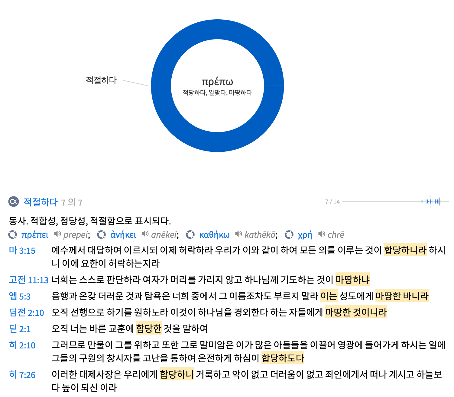 ‘합당한’으로 번역된 ‘프레페이’의 원형 ‘프레포’는 ‘어울리다, 합당하다, 마땅하다’라는 뜻이 있다. 이 표현은 신약에 7번 등장하는데 마 3:15에 한번 등장하는 것을 제외하고 모두 바울 서신에서만 사용되었다. 이는 진리와 교훈에 적합한 행동이나 삶을 강조할 때 사용되는 바울의 특징적인 단어라고 할 수 있다.