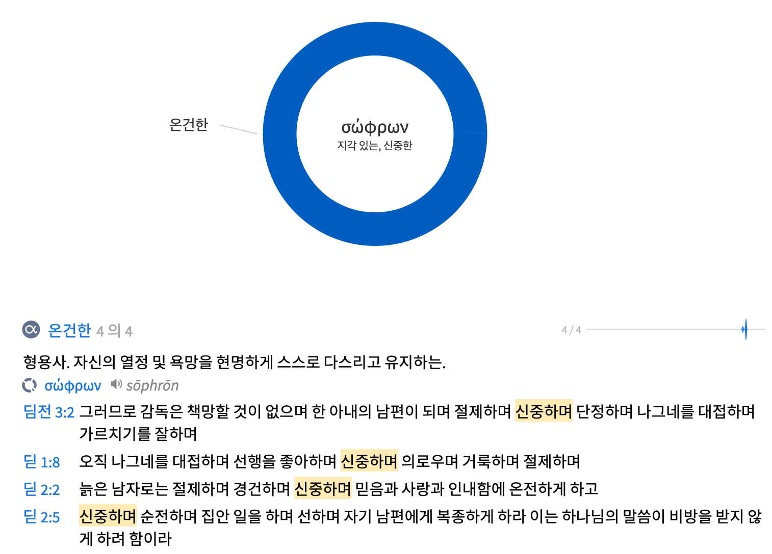 5절) ‘신중하며 순전하며 집안 일을 하며’, 신중하며로 번역된 ‘소프론’은 앞서 2절에서 사용된 표현으로 바울의 목회서신에 집중적으로 사용된 표현이다.