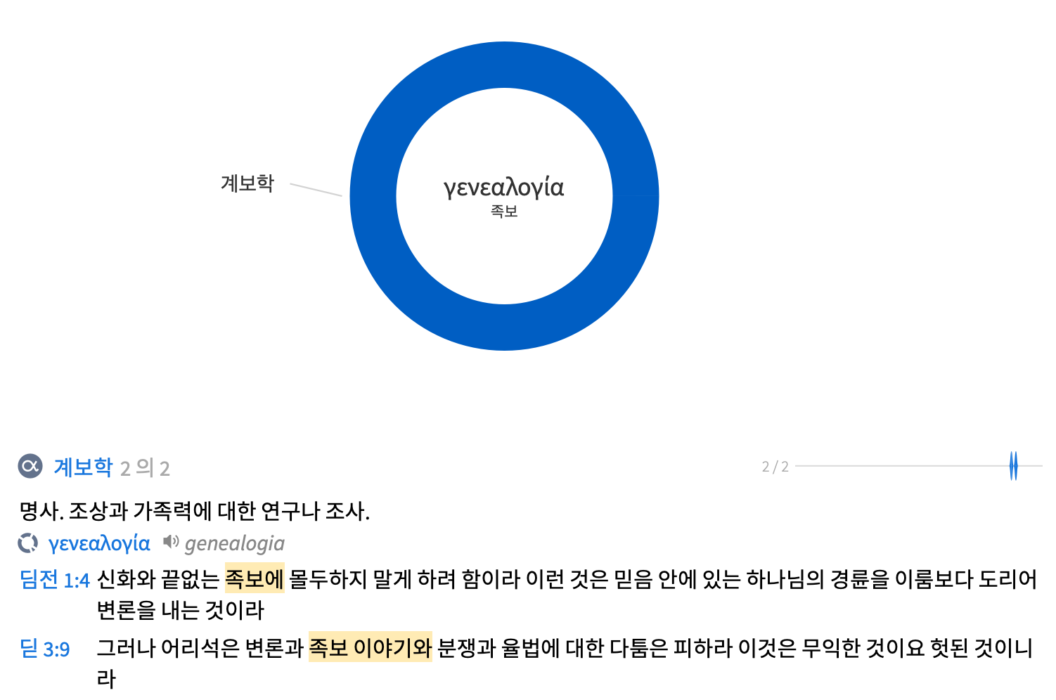 ‘족보 이야기’로 번역된 ‘게네알로기아스’의 원형 ‘게네알로기아’는 ‘세대, 가문’이른 뜻의 명사 ‘게네아’와 ‘말씀, 이야기’, 글’을 의미하는 명사 ‘로고스’의 합성어로 ‘가계의 기록, 조상이나 가족력에 대한 연구나 조사’를 의미한다. 많은 유대인들은 자신들이 하나님의 선택받은 선민이라는 의식에 가득차서 구약의 여러 이야기에서 출발하여 여러 가문들의 허구적인 이야기를 만들어내서 자신들의 우월성을 주장했다. 또한 성경에 나오지 않는 일종의 신화에 가까운 이야기들을 만들어내어서 자신들의 신앙 전통을 확립하고 자신들의 신앙을 정당화 하려하였다.(딤후 1:8-11)