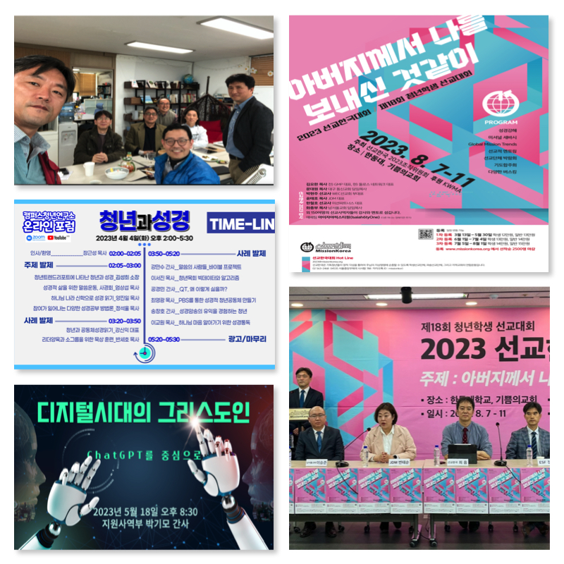 올해 선교한국 2023 대회가 포항 한동대, 기쁨의 교회에서 진행됩니다. 저는 프로그램위원회로 대회 준비를 함께 해오고 있습니다. 많은 청년들이 말씀을 통해서 선교의 부름에 헌신하게 되기를 기도합니다.