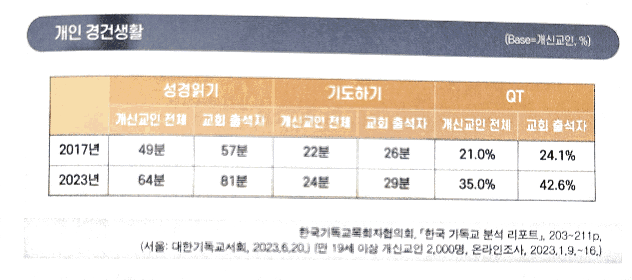 - 교인들이 바라는 이상적 교회는 하나님 중심(예배, 기도), 개인 도덕성, 이웃 섬김(사회 구제 봉사)이 균형 잡힌 교회이다. (164)