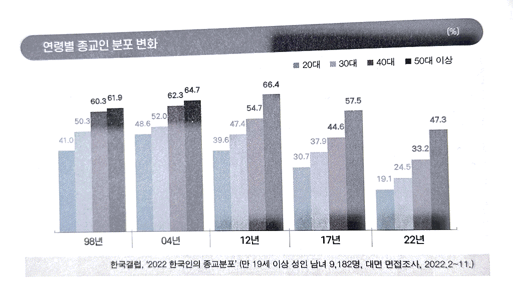교회 안의 3040세대 역시 마찬가지이다. 청년세대를 마감하고 기성세대로 넘어가는 과정이지만 기성세대에 대한 거부감으로 장년부에 쉽게 편입되지 못한다. 삶의 불안정과 분주함으로 신앙도 약화되기 쉽다. 대면 예배 출석 비율이 가장 낮은 연령대가 이 세대이고, 요즘 이슈로 떠오른 '플로팅 크리스천(온라인상에서 떠다니는 성도)도 이 세대가 주도하고 있다. 가나안 성도의 주된 연령대 역시 40대였다. 3040세대는 한국교회의 약한 고리가 되고 있다.