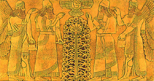 - Biblical descriptions of cherubim (e.g., Ezek. 1; 10) agree with archaeological finds that suggest cherubim are composite creatures (like griffins or sphinxes). Representations of these creatures are often found flanking the throne of a king. Here in Genesis the cherubim guard the way to the tree of life, now forbidden property of God. An interesting Neo-Assyrian seal depicts what appears to be a fruit tree flanked by two such creatures with deities standing on their backs supporting a winged sun disk. Ironically, whereas people were originally charged with “keeping” the garden (Gen. 2:15), now that same verb is used as the cherubim “guard” the way to the tree of life, keeping people out. The warden is off to jail.