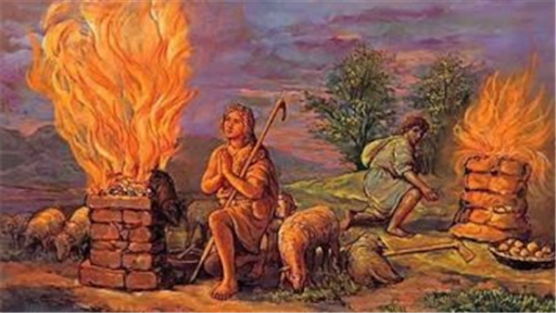 2-5절) 하와는 이후에 가인의 아우 아벨을 낳았다. 아벨은 양 치는 자였고 가인은 농사하는 자였다. 세월이 지난 후에 가인은 땅의 소산으로 제물을 여호와께 드렸고 아벨은 양의 첫 새끼와 그 기름으로 드렸다. 이에 여호와께서 아벨과 그의 제물은 받으셨지만 가인과 그의 제물은 받지 않으셨다.
