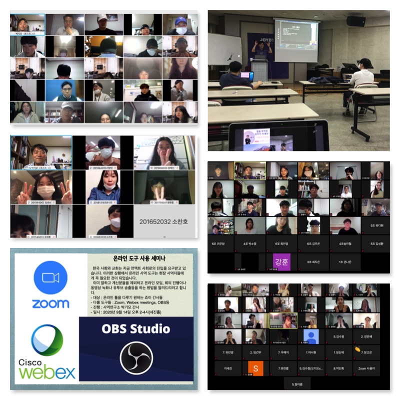 전주대에서 강의를 진행하면서 코로나로 인해 수업을 온라인으로 진행하게 되었습니다. 매주 새로운 강의 영상을 제작해서 올리고 학생들과 온라인으로 만나서 수업을 진행하면서 자연스럽게 여러 가지 온라인 도구들을 접하고 익히게 되었습니다. 이렇게 익힌 내용들을 기반으로 해서 포스트 코로나 시대, 언택트 사회로의 준비를 위해서 사역자들이 갖추면 좋을 온라인 사역 도구중에 Zoom, Webex, OBS 사용법에 대한 세미나를 진행했습니다. 위 프로그램들은 온라인 모임이나 회의 진행, 동영상 녹화나 유투브 송출을 편하게 할 수 있는 도구들인데 이를 사용하는 방법을 설명하고 직접 사용해보는 시간을 가졌습니다.