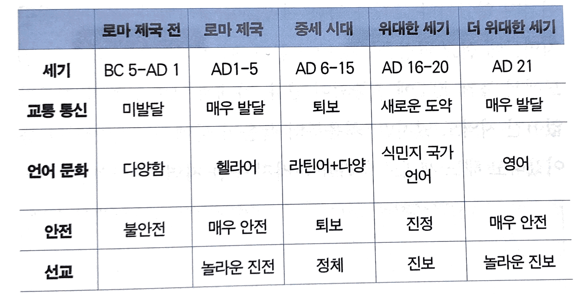 1) 로마제국의 기독교 전파 : 도로의 건설과 정비, 코이네 헬라어의 보급, 로마제국의 안전