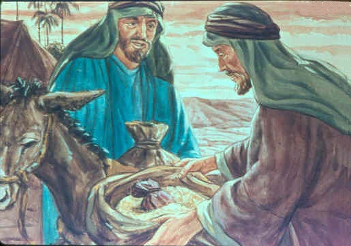 - The journey from Egypt back to Canaan is a long journey, making it necessary for Jacob’s sons to stop overnight on the way. Moses, traveling in the opposite direction, also had to break his journey (Exod. 4:21–26). Sometime during the evening one of the brothers, who remains unidentified, opens his bag to feed his donkey. In spite of the fact that they are bearing precious food supplies back to Canaan for their consumption, they must provide food for the animals as well as for themselves. Upon opening his bag of grain, this anonymous brother discovers the money on top of the grain inside his bag.